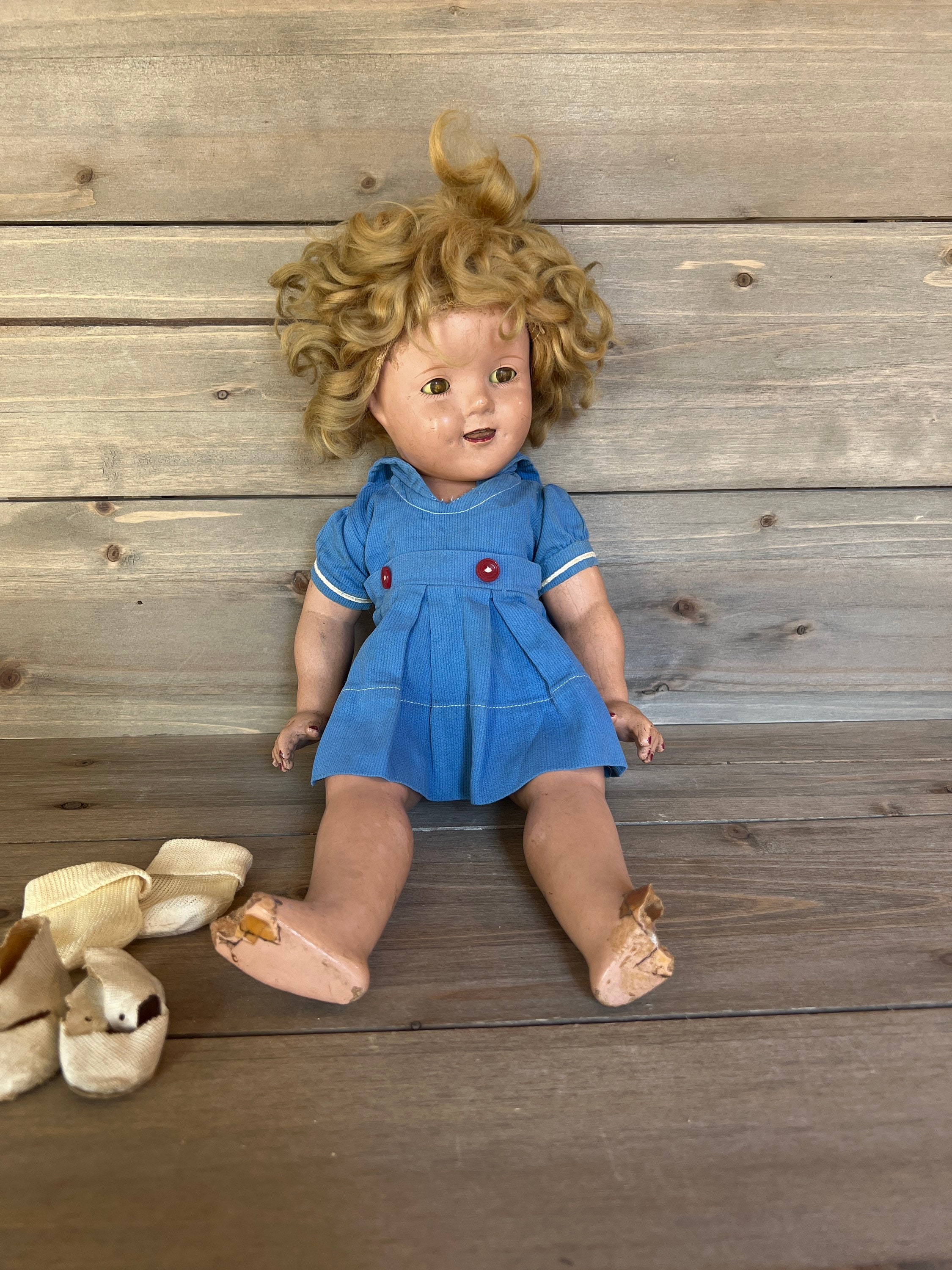 Platonic shirley temple composition doll - eighteen. Her facial features are in fantabulous status head is loose, though still fastened. this is an exclusive vintage ideal thumbelina doll that is bachelor for behest.